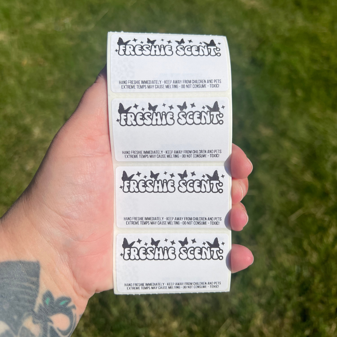 Car Freshie Scent + Care - 2.25” x 1.25" Thermal Printed Stickers - Groovy Butterfly