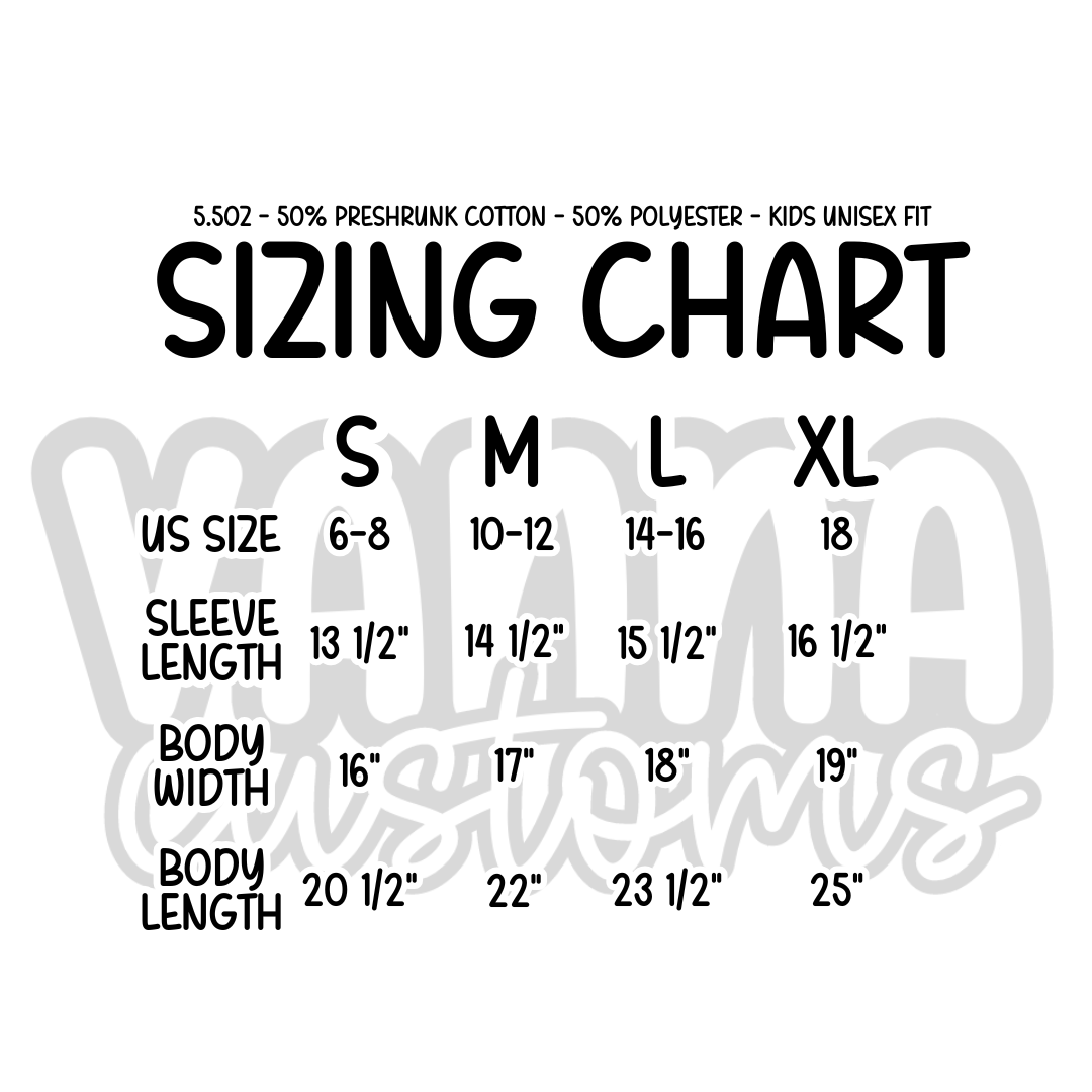 50% polyester/50% cotton unisex fit short sleeve ash grey shirt with sublimated graphic in youth sizing.