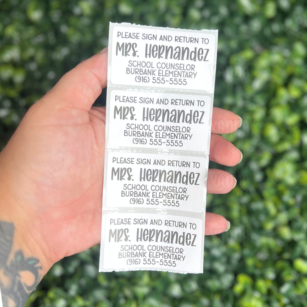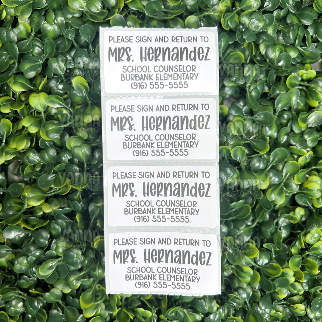Please Sign and Return To 2.25”x1.25” Thermal Printed Labels - School Counselor - Psychologist - Speech Language Pathologist - Teacher